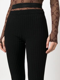 cut-out ribbed-knit trousers black chunky ribbed knit cut-out detailing stretch-design skinny cut flared Made in Italy Composition Viscose 80%, Polyester 10%, Polyamide 9%, Spandex/Elastane 1% SIZE & FIT Model measurements Height 5 ft 10 in(1.77 m) Bust/Chest 35.03 in(89 cm) Hips 35.03 in(89 cm) Waist 23.62 in(60 cm) FittingInformation This piece fits small – you might want to get one size up Cut for a slim fit Made with a mid-weight stretch fabric
