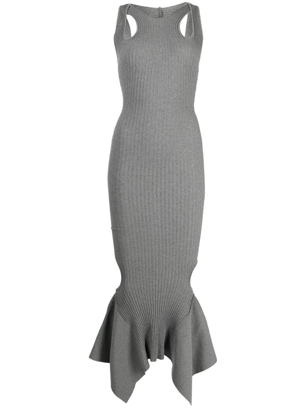 cut-out ribbed midi dress Highlights - Grey - Ribbed knit - Mermaid silhouette - Cut-out detailing - Overlapping panel - Round neck - Sleeveless - Asymmetric hem - Mid-length Made in Italy Composition Body: Viscose 80%, Polyester 10%, Polyamide 9%, Elastane 1% SIZE & FIT Model measurements Height 5 ft 10 in(1.77 m) Bust/Chest 31.49 in(80 cm) Hips 35.43 in(90 cm) Waist 25.19 in(64 cm) FittingInformation Designed for a close fit throughout Made from a midweight stretch fabric, this piece offers elasticity and flexibility when worn This piece fits close in all sizes – take your usual size Washing instructions Machine Wash