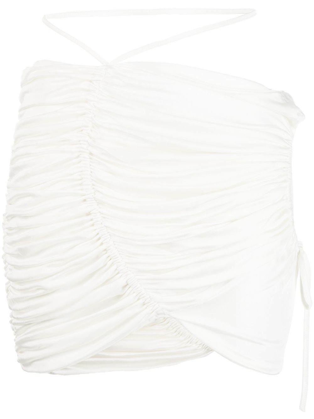 gathered-detail mini skirt Highlights - White - Asymmetric design - Rear tie fastening - Gathered detailing - Cut-out detailing - Draped detailing - Belted waist Made in Italy Composition Viscose 100% SIZE & FIT Model measurements Height 5 ft 10 in(1.77 m) Bust/Chest 32.28 in(82 cm) Hips 35.03 in(89 cm) Waist 25.19 in(64 cm) FittingInformation This mini-length skirt is intended to be worn just below the waist The tie fastening gives an adaptable and personalised fit Made from a midweight non-stretch fabric, this piece offers minimal elasticity when worn This piece fits true to size – take your usual size Washing instructions Machine Wash