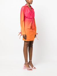 gradient-effect gathered-detail short dress raspberry pink/carrot orange cotton blend gradient effect gathered detailing ribbed detailing classic collar V-neck long sleeves tied cuffs straight hem Made in Italy Composition Cotton 50%, Viscose 40%, Polyester 6%, Polyamide 3%, Spandex/Elastane 1% SIZE & FIT Model measurements Height 5 ft 9 in(1.76 m) Bust/Chest 33.07 in(84 cm) Hips 38.58 in(98 cm) Waist 24.8 in(63 cm) FittingInformation Designed for a slim fit that sits just away from the body offering a close yet comfortable fit Made from a midweight non-stretch fabric This piece fits true to size – take your usual size