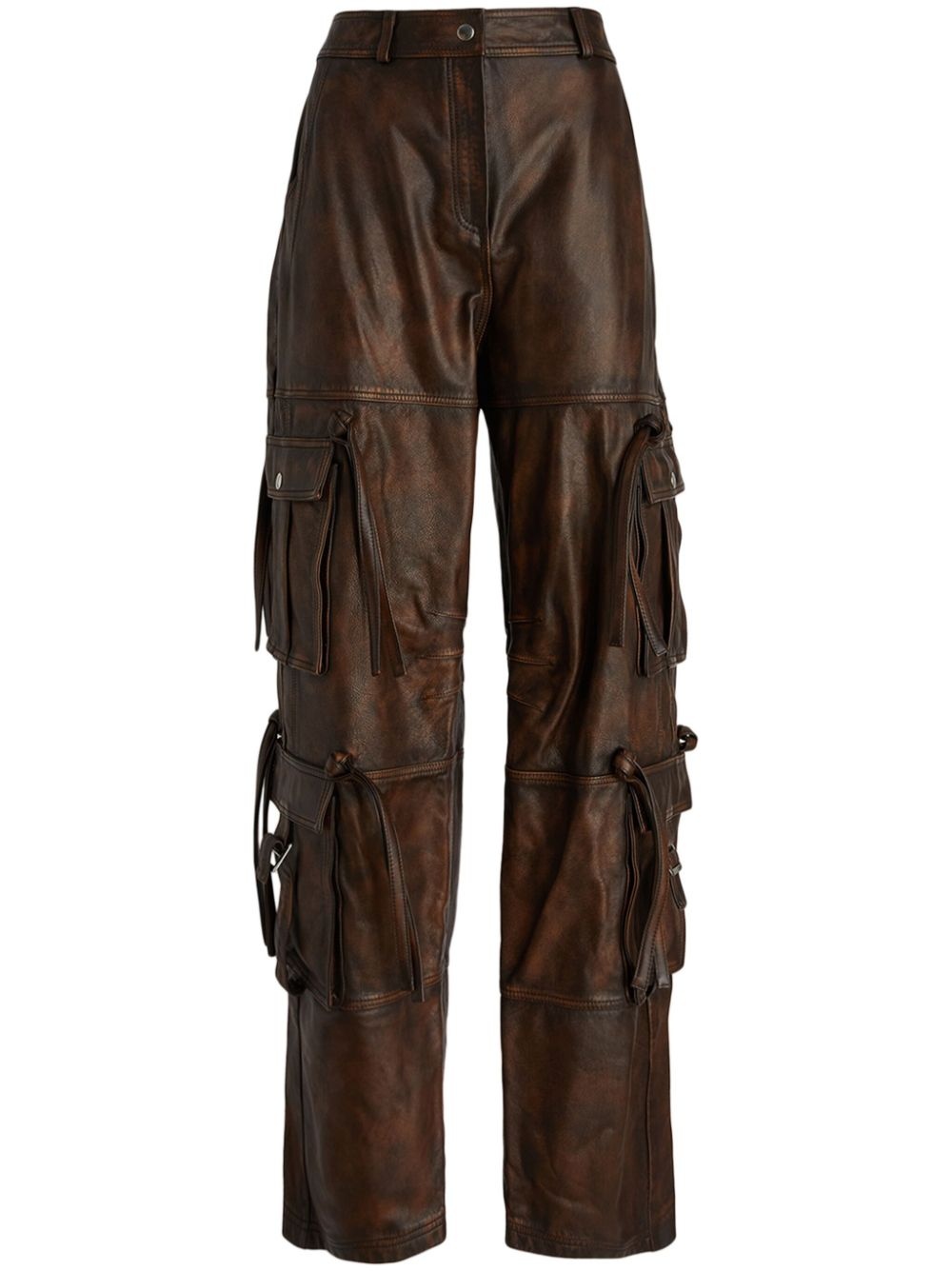 leather straight-leg trousers Highlights - Brown - Calf leather - Front button and zip fastening - Belt loops - Multiple cargo pockets - Tassel detail - Straight leg Imported Composition Calf Leather 100%