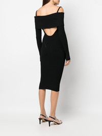 off-shoulder ribbed knit dress jet black stretch-design ribbed knit thin shoulder straps off-shoulder long sleeves cut-out detailing Made in Italy Composition Viscose 80%, Polyester 10%, Polyamide 9%, Spandex/Elastane 1% SIZE & FIT Model measurements Height 5 ft 10 in(1.78 m) Bust/Chest 33.07 in(84 cm) Hips 35.82 in(91 cm) Waist 26.96 in(68.5 cm) FittingInformation This piece fits true to size. We recommend you get your regular size Cut for a slim fit Made with a mid-weight stretch fabric