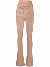perforated knitted trousers nude brown perforated detailing high waist cut-out detailing flared design Made in Italy Composition Viscose 80%, Polyester 10%, Polyamide 9%, Spandex/Elastane 1% SIZE & FIT Model measurements Height 5 ft 10 in(1.78 m) Bust/Chest 31.49 in(80 cm) Hips 36.22 in(92 cm) Waist 25.59 in(65 cm) FittingInformation This piece fits true to size. We recommend you get your regular size Designed to be fitted at the waist and through the thigh, loose from the knee Made with a mid-weight stretch fabric Washing instructions Machine Wash