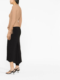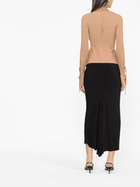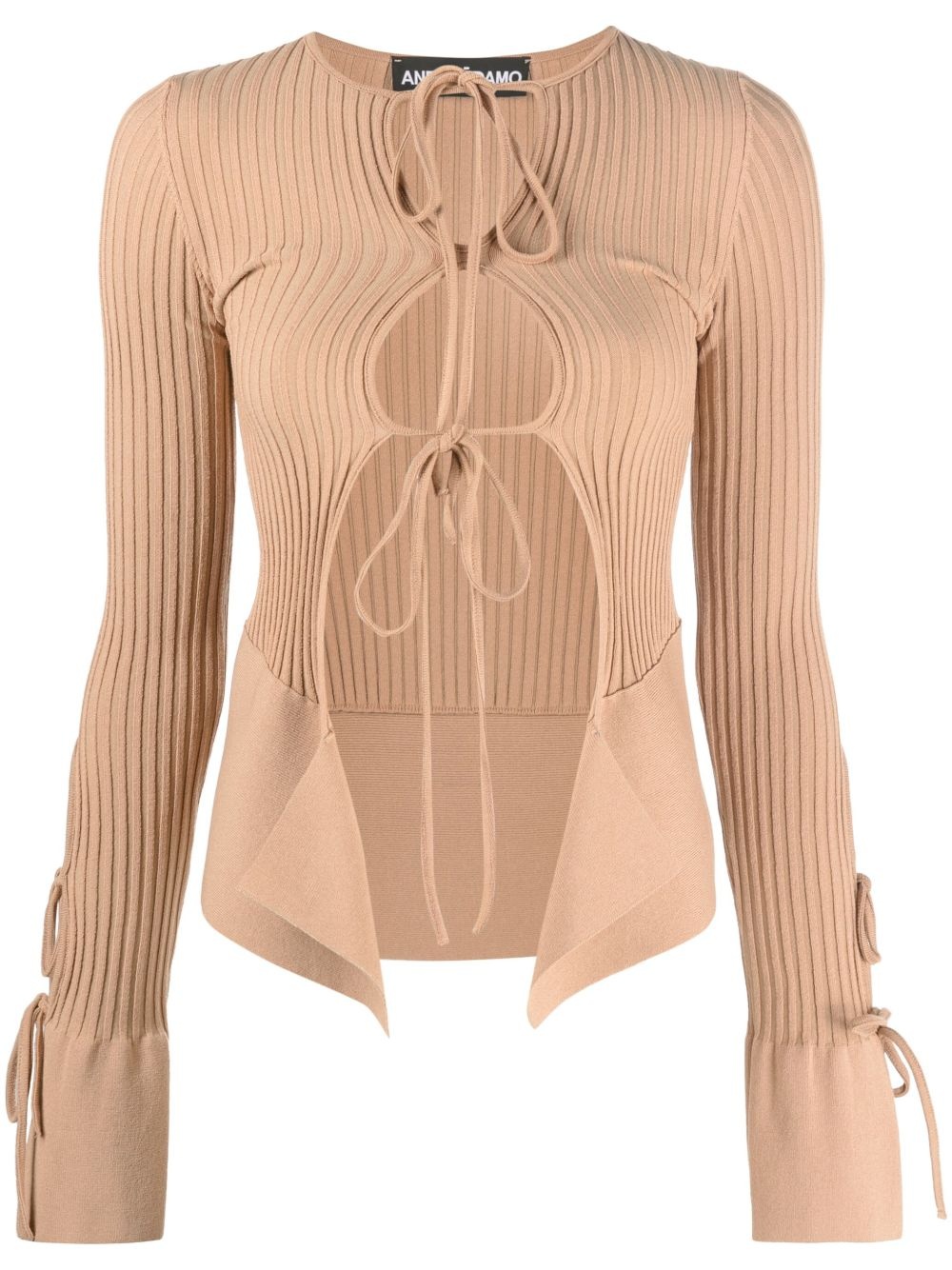 ribbed-knit long-sleeve top Highlights - Almond beige - Knitted construction - Wide ribbed - Cut-out detailing - Round neck - Front tie fastening - Extra-long sleeves - Tied cuffs Made in Italy Composition Viscose 80%, Polyester 10%, Polyamide 9%, Spandex/Elastane 1% Washing instructions Hand Wash
