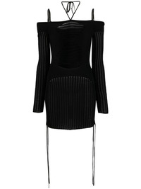 ribbed-knit mini dress black knitted construction ribbed knit cut-out detailing semi-sheer panels halterneck tie fastening square open back long sleeves bodycon design thigh-length straight hem Made in Italy Composition Viscose 80%, Polyester 10%, Polyamide 9%, Spandex/Elastane 1% SIZE & FIT Model measurements Height 5 ft 11 in(1.8 m) Bust/Chest 33.07 in(84 cm) Hips 37.4 in(95 cm) Waist 25.19 in(64 cm) FittingInformation This piece fits true to size. We recommend you get your regular size Cut for a close fit Made with a mid-weight stretch fabric