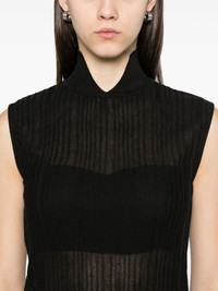 ribbed mini dress Highlights - Black - Sleeveless - Open back - Flared hem Made in Italy Composition Viscose 75%, Polyester 25% SIZE & FIT Model measurements Height 5 ft 10 in(1.78 m) Bust/Chest 33.85 in(86 cm) Hips 36.61 in(93 cm) Waist 26.77 in(68 cm) FittingInformation Designed for a relaxed fit, this piece allows for comfort and movement when worn Made with a midweight knit, this piece offers some stretch
