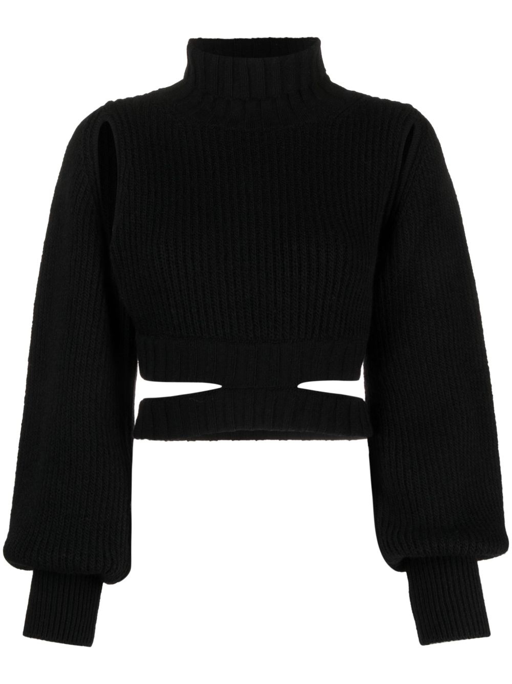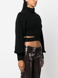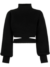 roll-neck cropped knit jumper Highlights - Jet black - Stretch-design - Fisherman's knit - Cut-out detailing - Roll neck - Bishop sleeves - Ribbed cuffs and hem - Cropped Made in Italy Composition Acrylic 48%, Virgin Wool 48%, Spandex/Elastane 4% SIZE & FIT Model measurements Height 5 ft 10 in(1.77 m) Bust/Chest 31.88 in(81 cm) Hips 36.22 in(92 cm) Waist 24.01 in(61 cm) FittingInformation Designed for a slim fit that sits just away from the body offering a close yet comfortable fit Made with a midweight knit, this piece offers some stretch This piece fits true to size – take your usual size