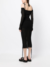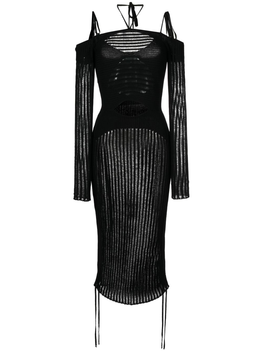 semi-sheer midi dress Highlights - Black - Stretch-design - Adjustable spaghetti straps - Adjustable neck strap - Semi-sheer panels - Cut-out detailing - Mid-length - Long sleeves - Curved hem Made in Italy Composition Body: Viscose 80%, Polyester 10%, Polyamide 9%, Elastane 1% SIZE & FIT Model measurements Height 5 ft 10 in(1.78 m) Bust/Chest 30.31 in(77 cm) Hips 34.64 in(88 cm) Waist 24.01 in(61 cm) FittingInformation Designed for a close fit throughout The adjustable shoulder straps allow for a preferred fit when worn Made with a midweight knit, this piece offers some stretch This piece fits true to size – those with curvy hips may wish to take one size up