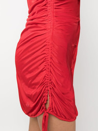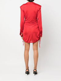 v-neck ruched dress bright red ruched detailing V-neck front button fastening above-knee length long sleeves Made in Italy Composition Viscose 100% SIZE & FIT Model measurements Height 5 ft 11 in(1.8 m) Bust/Chest 31.49 in(80 cm) Hips 35.43 in(90 cm) Waist 24.4 in(62 cm) FittingInformation This piece fits true to size. We recommend you get your regular size Cut for a slim fit Made with a mid-weight fabric
