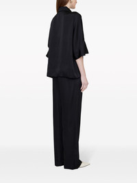 Aden high-waisted wide-leg trousers Highlights - Black - Silk blend - High-waisted - Elasticated waistband - Wide leg - Side slits - Floor-length Imported Composition Silk 62%, Rayon 38% Washing instructions Read Manufacturer Guidelines