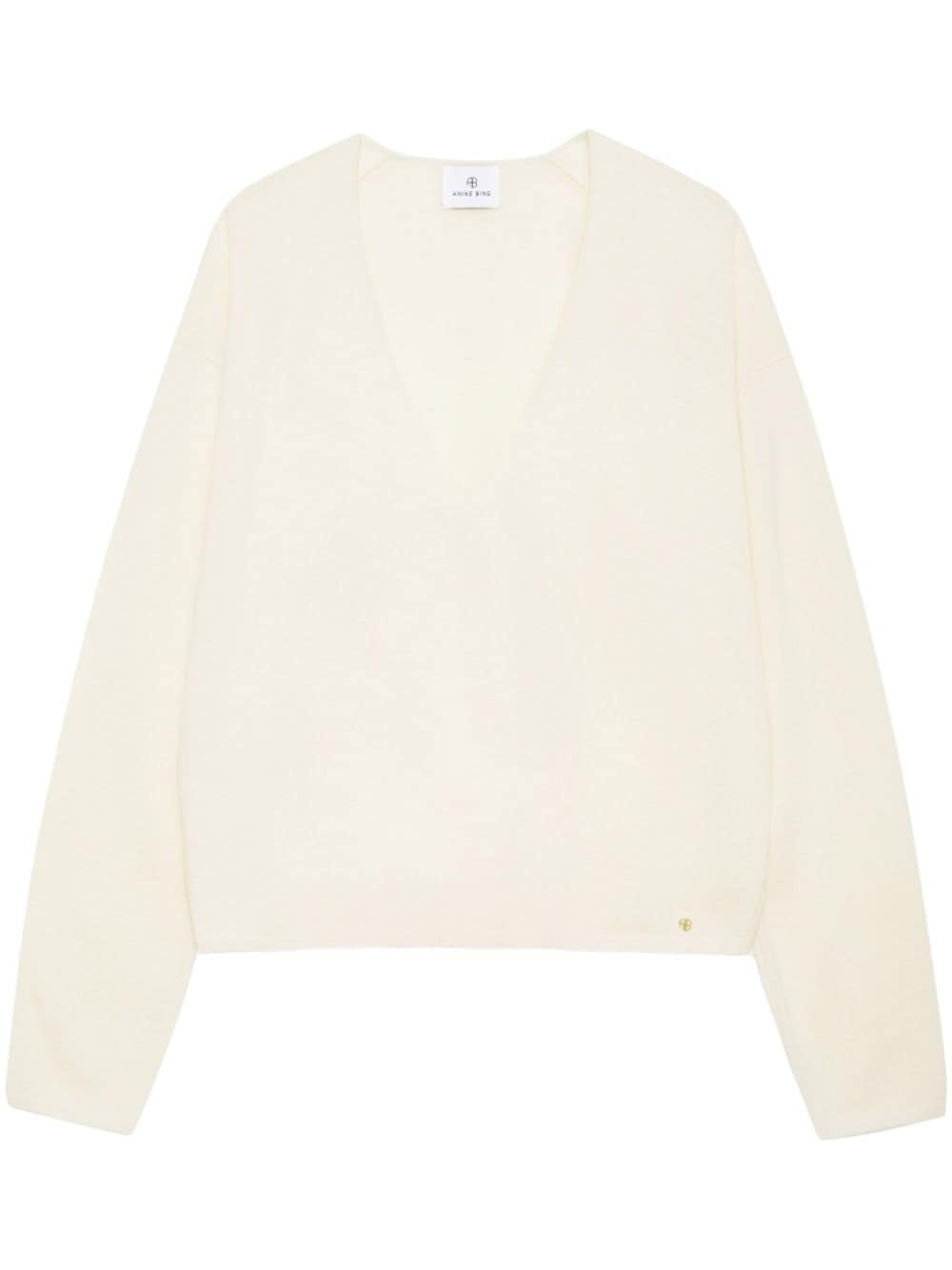 Athena cashmere jumper Highlights - Ecru - Cashmere - Fine knit - Ribbed-knit edge - Gold-tone logo plaque - V-neck - Drop shoulder - Long sleeves - Straight hem Imported Composition Cashmere 100% SIZE & FIT Measurement SLEEVE LENGTH 22.44 in(57 cm) LENGTH 23.62 in(60 cm) BUST 38.58 in(98 cm) Shoulder Width 20.47 in(52 cm)