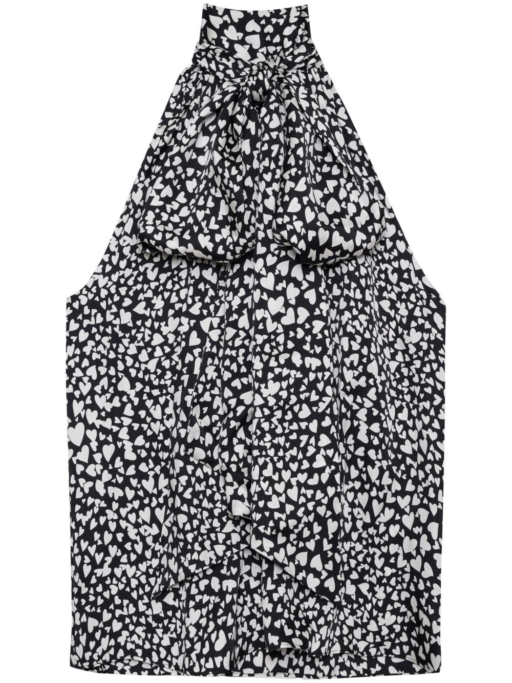 Brooke blouse Highlights - Black/white - Silk blend - Front tie fastening - Heart print - High neck - Sleeveless - Straight hem Imported Composition Silk 56%, Rayon 44%