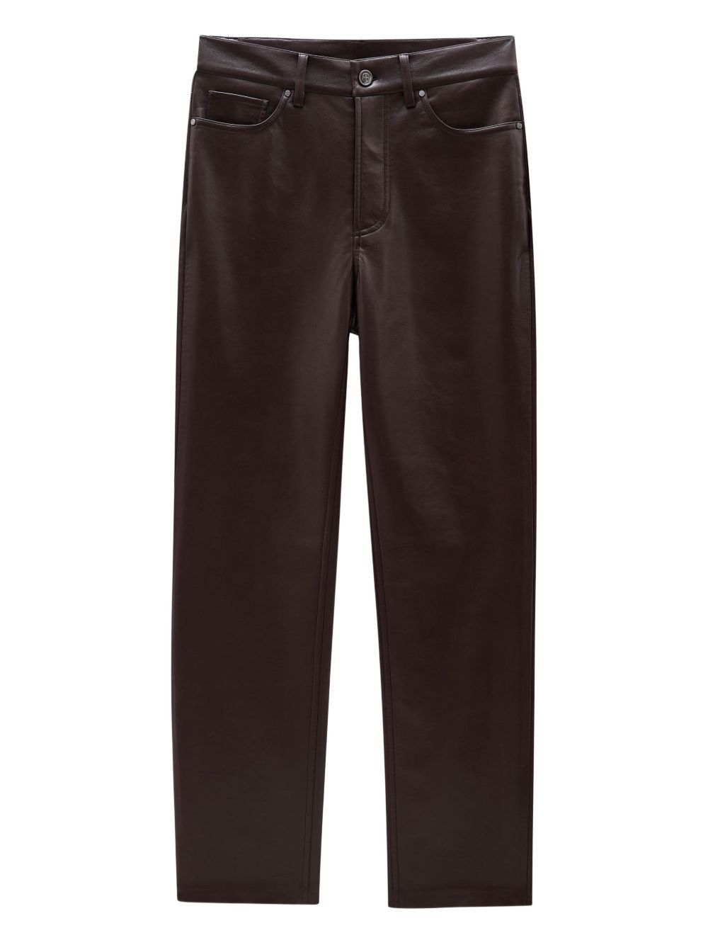 button fly trousers Highlights - Deep brown - Side pockets - Button fly Imported Composition Leather 48%, Fabric 27%, Polyester 25% Washing instructions Read Manufacturer Guidelines