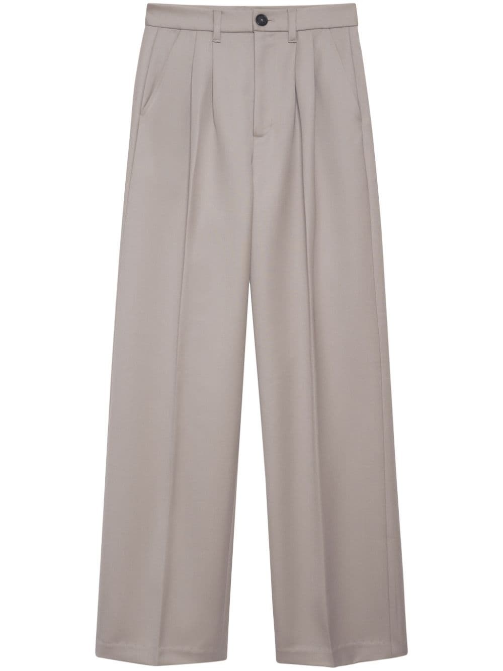 Carrie pressed-crease tailored trousers Highlights - Taupe grey - Wool - Pressed crease - Belt loops - Front button fastening - Two side slit pockets - Two rear jetted pockets Imported Composition Wool 100% Washing instructions Dry Clean Only