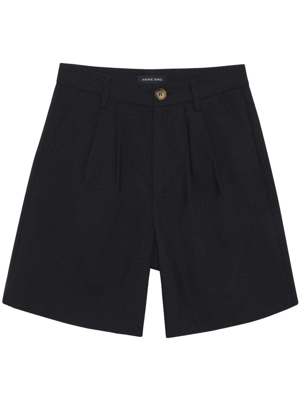 Carrie tailored shorts Inspired by the brand's iconic Carrie trousers, Anine Bing's Carrie shorts arrive in a black colourway and are crafted from a wool blend. This tailored style is fully lined and is cut for a close, high-rise fit that relaxes through the thigh. Highlights - Black - Wool blend - High waist - Front button fastening - Belt loops - Two slant side pockets - Two rear welt pockets Imported Composition Polyester 55%, Virgin Wool 45%