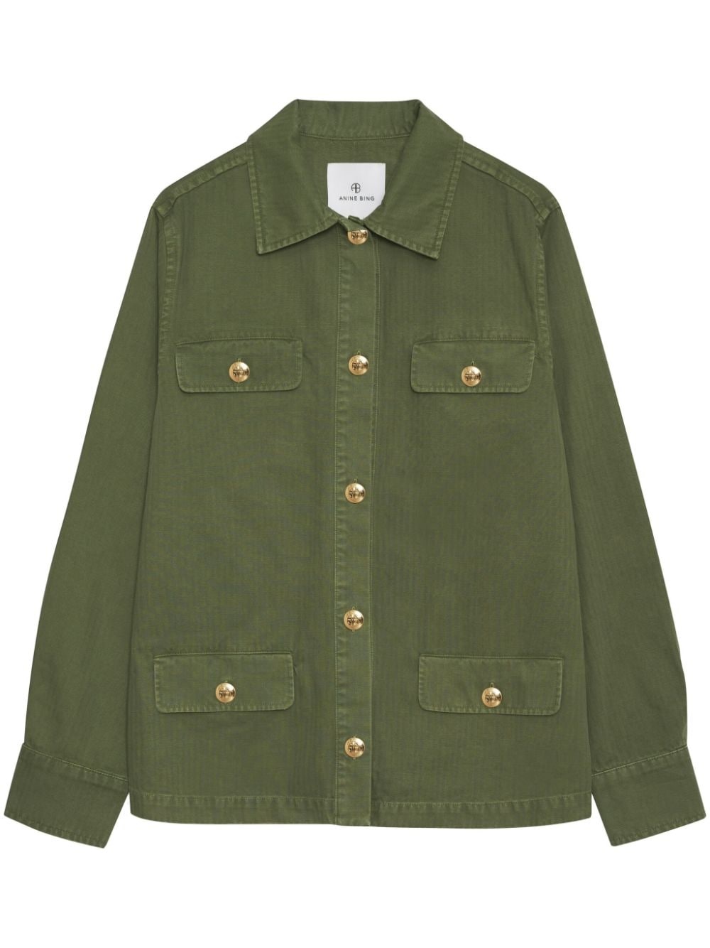 Corey military jacket ANINE BING's focus on high-quality designs is shown on the Corey jacket. It's made from midweight 100% cotton with a structured weave in a fine herringbone pattern in a timeless olive green hue. Highlights - Olive green - Cotton - Classic collar - Front button fastening - Two button-fastening chest pockets - Two side button-fastening pockets - Long sleeves - Straight hem Imported Composition Cotton 100%