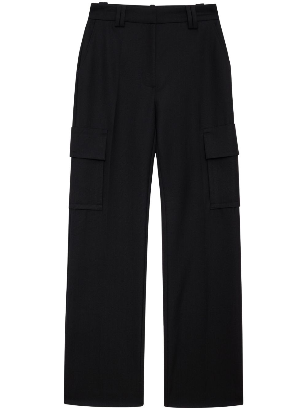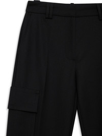 Dayton cargo trousers Highlights - Black - Front button and zip fastening - Two side inset pockets - Two side cargo pockets - Wide leg Imported Composition Polyester 52%, Wool 48% Washing instructions Dry Clean Only