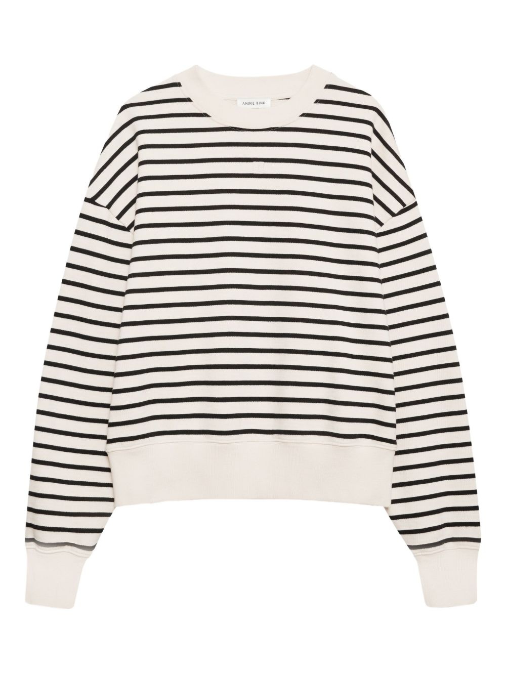 Dean sweatshirt Highlights - White - Horizontal stripe pattern - Crew neck - Drop shoulder - Long sleeves Imported Composition Cotton 83%, Polyester 17%