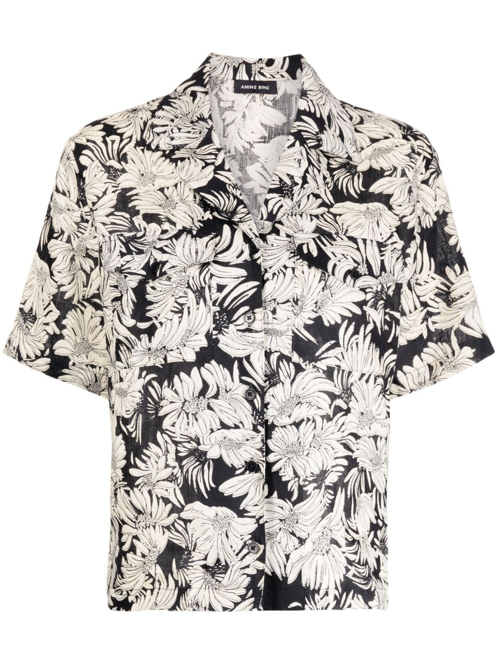 floral-print linen shirt Highlights - Black/white - Linen/flax - All-over floral print - Notched collar - Front button fastening - Short sleeves - Two chest flap pockets - Straight hem Imported Composition Linen/Flax 100% SIZE & FIT Model measurements Height 5 ft 9 in(1.76 m) Bust/Chest 29.92 in(76 cm) Hips 35.82 in(91 cm) Waist 25.98 in(66 cm) Measurement SLEEVE LENGTH 4.72 in(12 cm) LENGTH 25.59 in(65 cm) WAIST 42.51 in(108 cm) BUST 42.51 in(108 cm) Shoulder Width 18.11 in(46 cm) FittingInformation Designed to be unstructured, offering a loose fit throughout Made from a midweight non-stretch fabric This piece fits true to size – take your usual size Washing instructions Machine Wash
