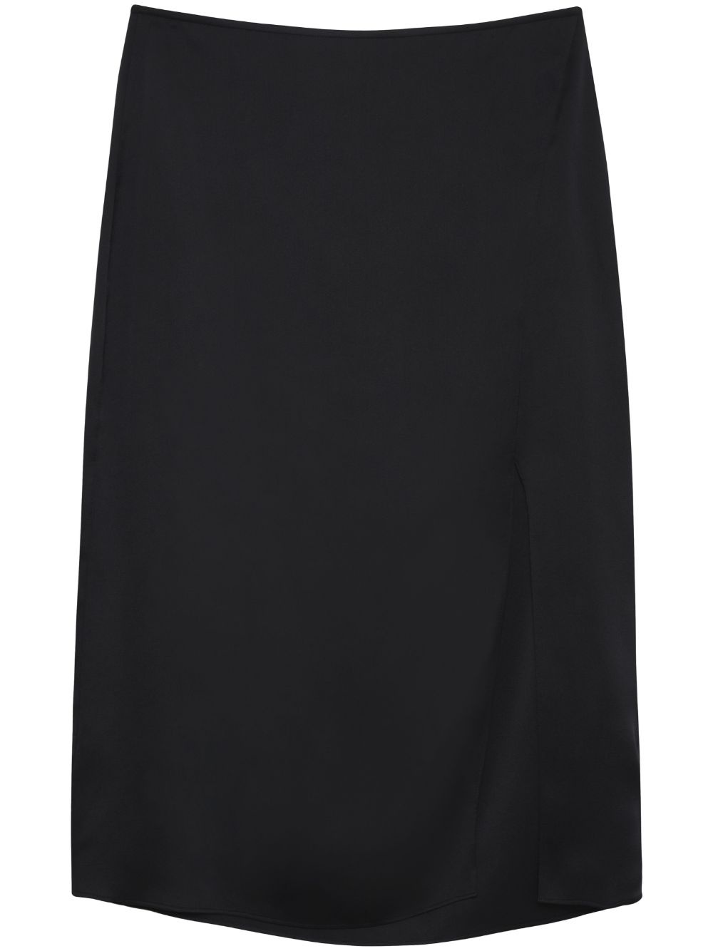 Jolin silk midi skirt Anine Bing's Jolin Skirt is constructed from double-faced silk charmeuse in a black colourway. Its timeless, midi-length silhouette is cut for a close, high-waisted fit and is finished with a high diagonal side slit. Highlights - Black - Silk - High waist - Side zip fastening - Side split - Straight hem Made in Italy Composition Silk 100% Washing instructions Dry Clean Only