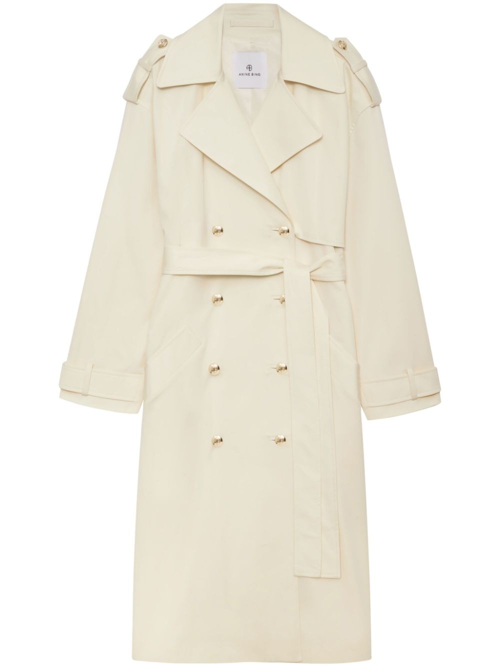 Layton button-detail oversize trench Highlights - Cream white - Stretch-cotton - Twill weave - Water-resistant - Gold-tone buttons - Wide notch lapels - Double-breasted button fastening - Epaulettes - Drop shoulder - Long sleeves - Belted cuffs - Slip pockets to the sides - Straight hem - Central rear vent Imported Composition Cotton 98%, Spandex/Elastane 2% SIZE & FIT Measurement SLEEVE LENGTH 21.65 in(55 cm) LENGTH 44.48 in(113 cm) WAIST 40.15 in(102 cm) BUST 42.51 in(108 cm) Shoulder Width 20.07 in(51 cm) Washing instructions Read Manufacturer Guidelines