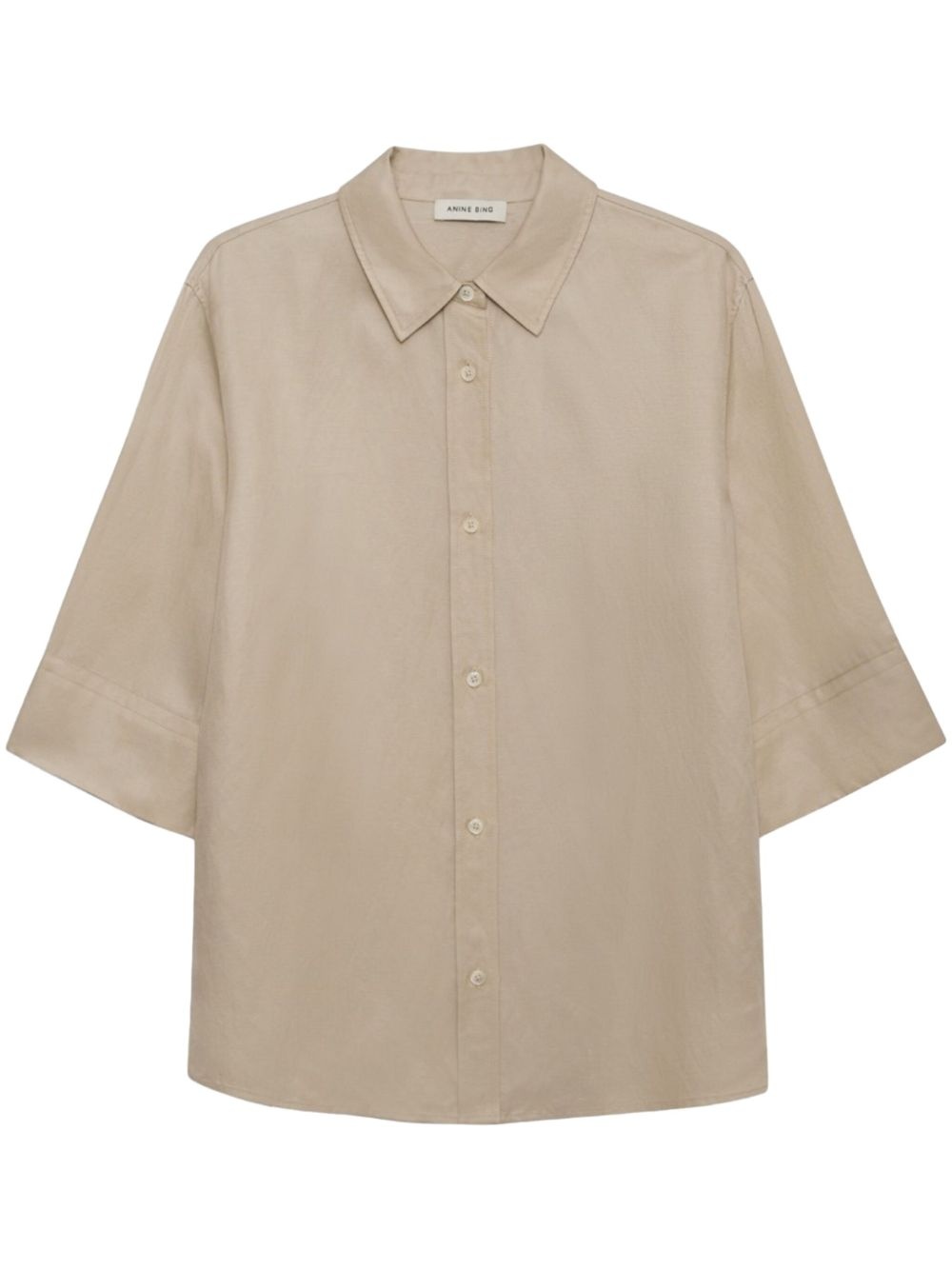 Mary shirt Highlights - Beige - Front button fastening - Classic collar - Wide sleeves - Straight hem Imported Composition Viscose 100% SIZE & FIT Measurement SLEEVE LENGTH 16.14 in(41 cm) LENGTH 27.55 in(70 cm) BUST 47.24 in(120 cm) Shoulder Width 19.29 in(49 cm)