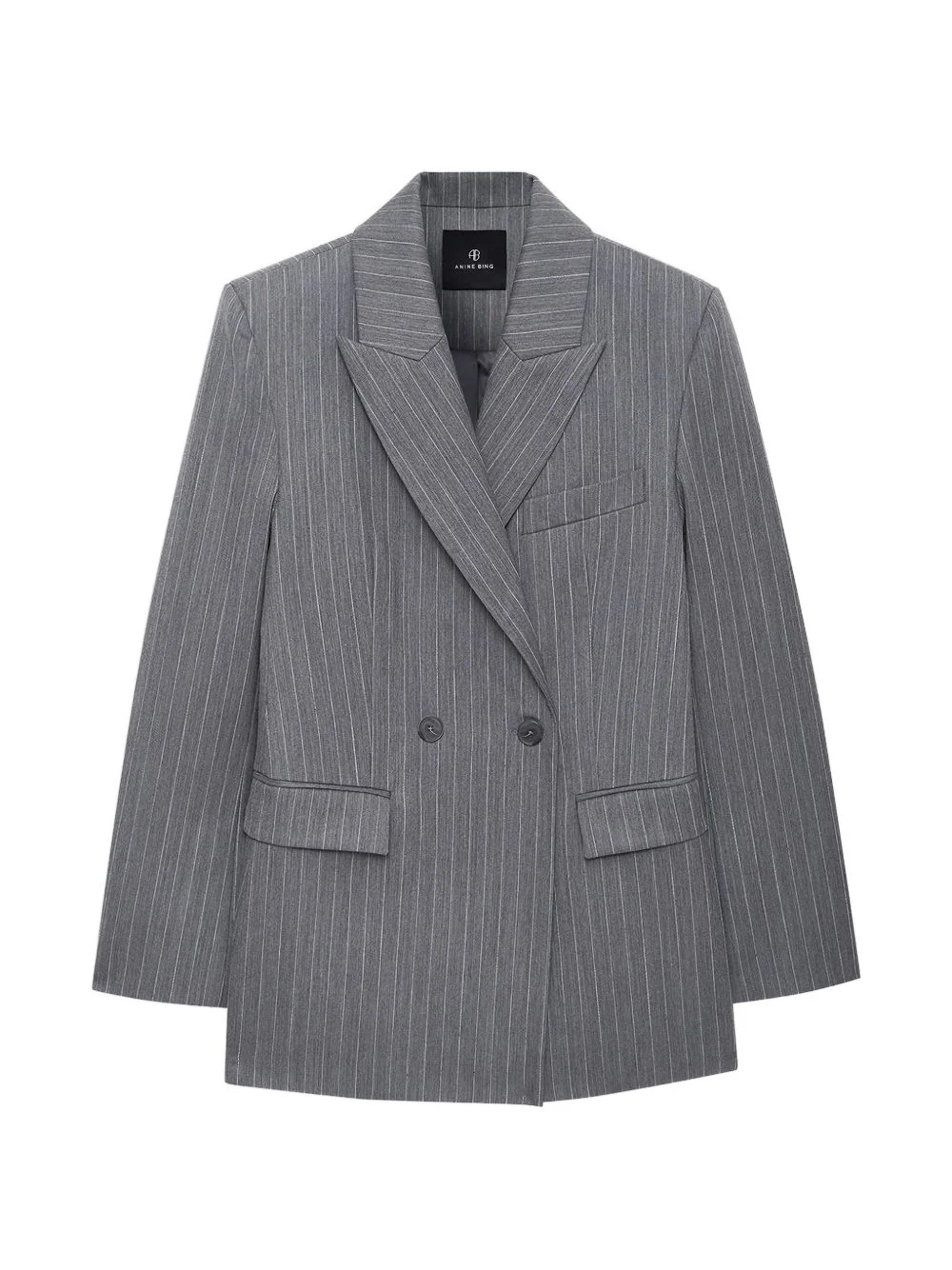pinstripe-pattern double-breasted blazer Highlights - Light grey - Pinstripe pattern - Double-breasted - Peaked lapel - Two front pockets Imported Composition Wool 100% Washing instructions Dry Clean Only