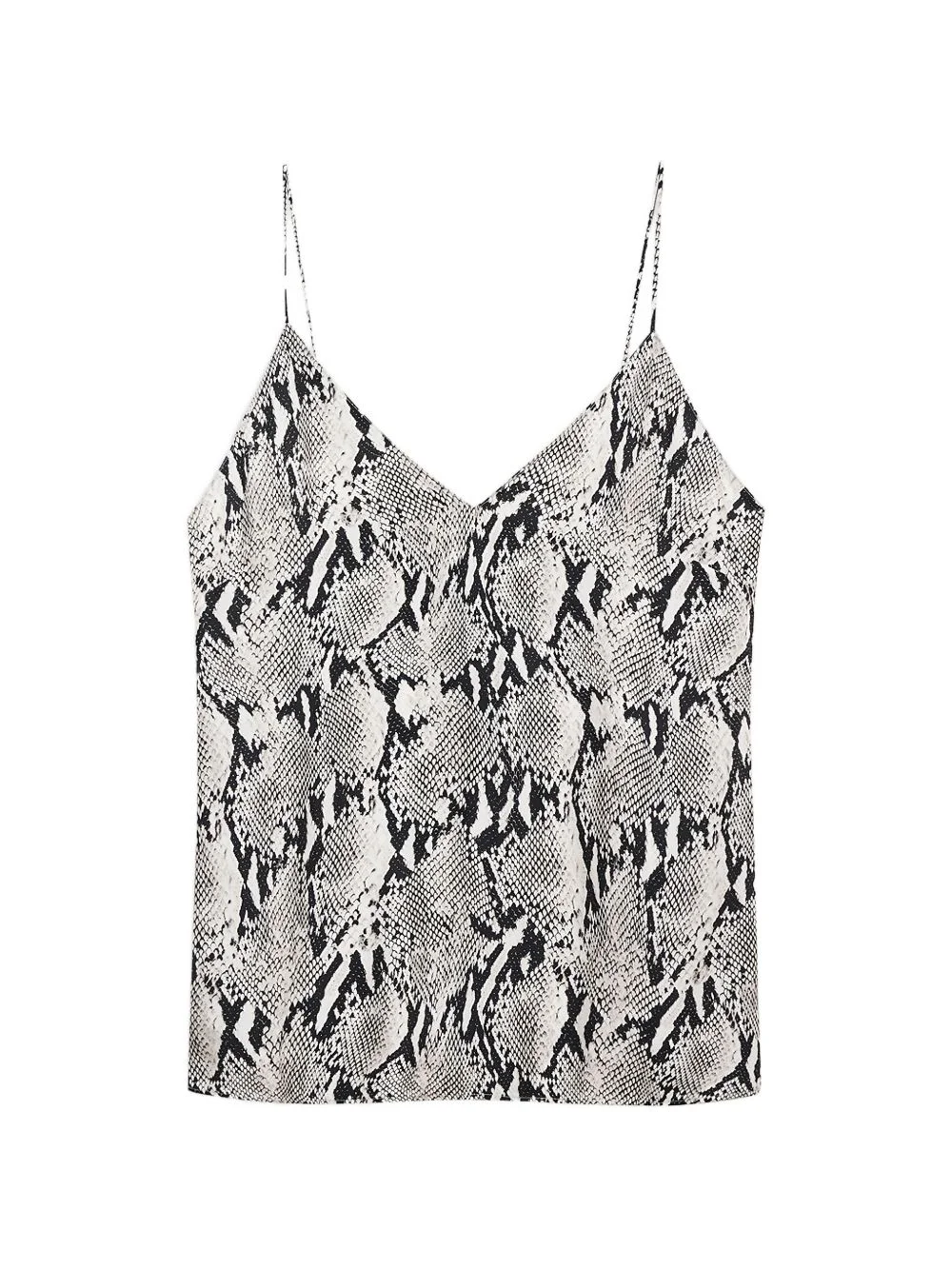 python v-neck top Highlights - White and black - Snakeskin effect - Spaghetti straps - V-neck Imported Composition Body: Cupro 60%, Viscose 40% Washing instructions Dry Clean Only