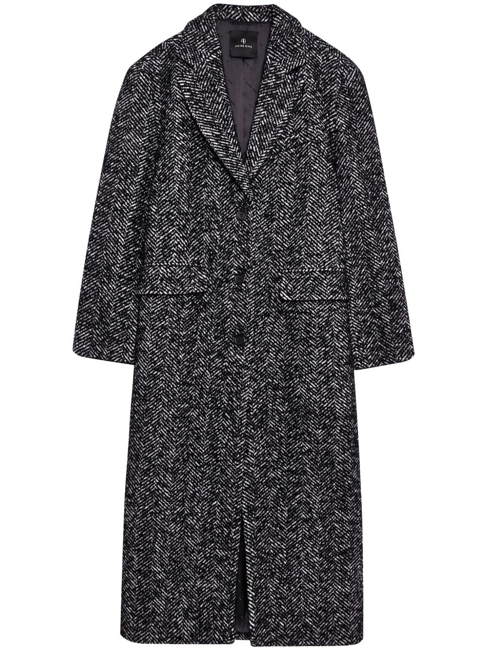Quinn coat Highlights - Black/white - Wool blend - Tweed - Front button fastening - Long sleeves - Straight hem - Two side flap pockets - Internal logo patch Imported Composition Wool 72%, Polyamide 21%, Mohair 7% Washing instructions Dry Clean Only