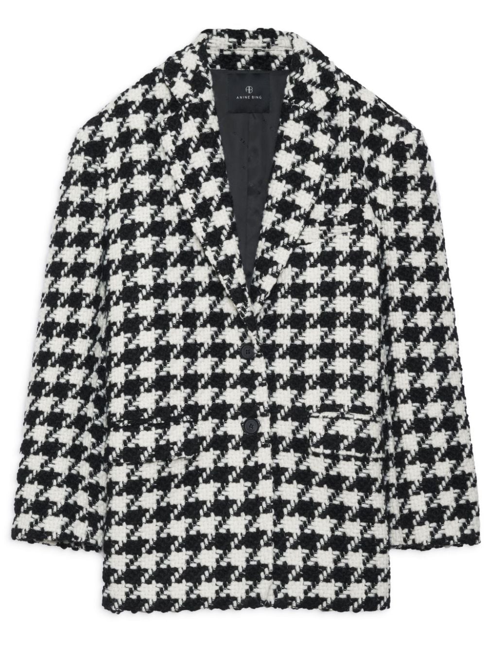 Quinn houndstooth blazer Highlights - Black/white - Houndstooth pattern - Boucle construction - Notched lapels - Front button fastening - Long sleeves - Two front flap pockets - Straight hem Imported Composition Acrylic 59%, Cotton 22%, Wool 10%, Polyester 6%, Other Materials 3% Washing instructions Dry Clean Only