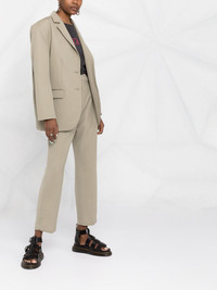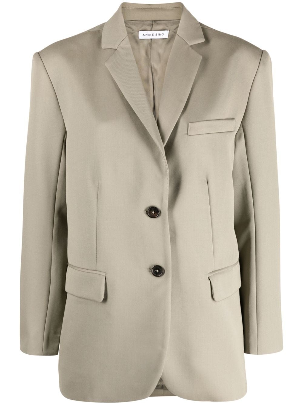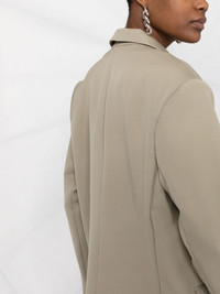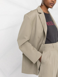 Quinn wool oversize blazer light khaki green wool notched lapels front button fastening long sleeves chest welt pocket two side flap pockets Imported Composition Outer: Wool 100% Lining: Viscose 100% SIZE & FIT Model measurements Height 5 ft 11 in(1.8 m) Bust/Chest 31.49 in(80 cm) Hips 36.61 in(93 cm) Waist 24.4 in(62 cm) FittingInformation This piece fits true to size. We recommend you get your regular size Cut for a loose fit Made with a mid-weight non-stretch fabric Washing instructions Dry Clean Only