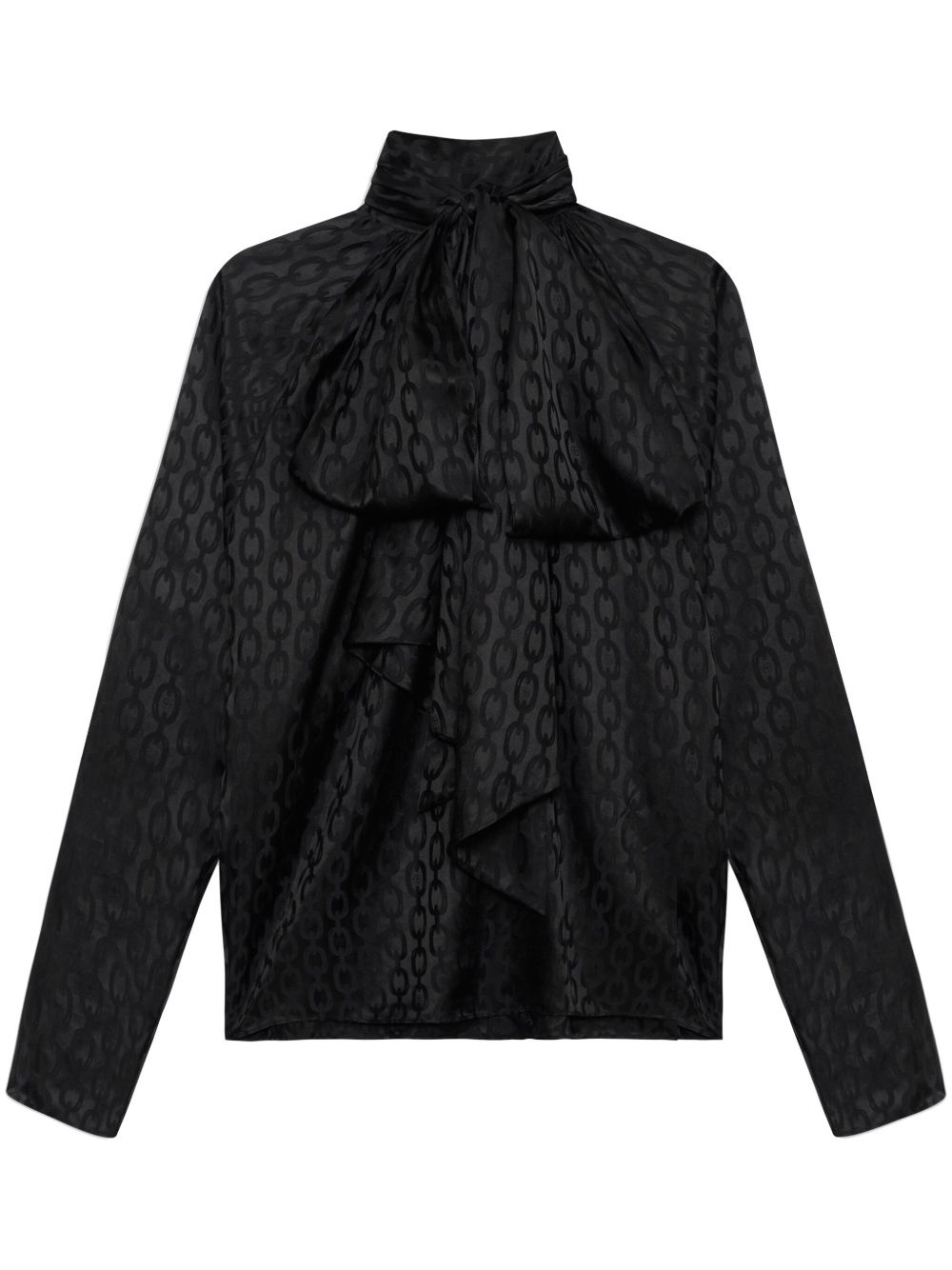 Rachel blouse Highlights - Black - Front tie fastening - Patterned jacquard - High neck - Long sleeves - Straight hem Imported Composition Outer: Rayon 57%, Silk 43% Washing instructions Dry Clean Only