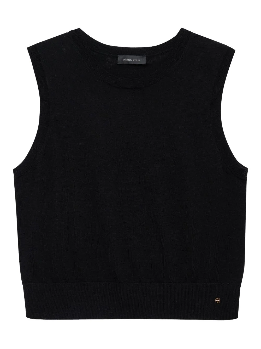 sleeveless round-neck top Highlights - Black - Round neck - Sleeveless - Ribbed hem - Fine knit - Logo detail Imported Composition Fabric 100% Washing instructions Read Manufacturer Guidelines