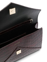 small Elly clutch bag Highlights - Burgundy - Calf leather - Embossed crocodile effect - Foldover top with magnetic fastening - Detachable chain-link shoulder strap - Main compartment - Internal patch pocket - Internal logo stamp - Full lining Imported Composition Lining: PVC 53%, Polyurethane 3% Outer: Calf Leather 100% SIZE & FIT Model measurements Height 5 ft 10 in(1.77 m) Bust/Chest 32.28 in(82 cm) Hips 35.03 in(89 cm) Waist 25.19 in(64 cm) Measurement DEPTH 1.18 in(3 cm) HEIGHT 5.51 in(14 cm) STRAP 25.59 in(65 cm) WIDTH 9.05 in(23 cm)