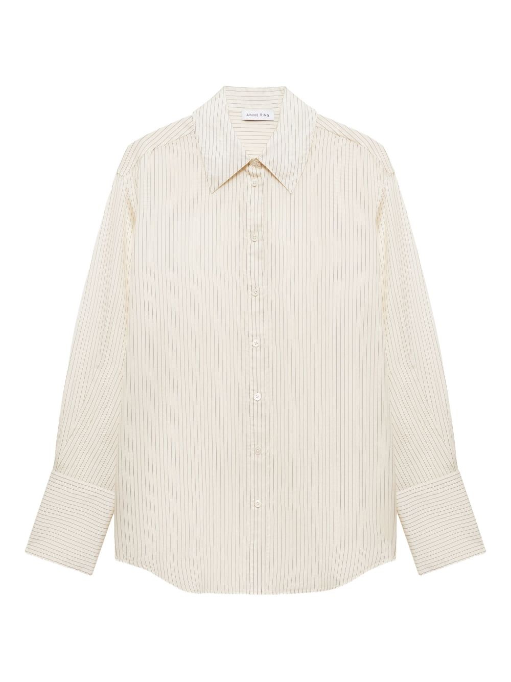 striped shirt Highlights - White - Front button fastening - Long sleeves - Buttoned cuffs - Curved hem Imported Composition Cupro 100%