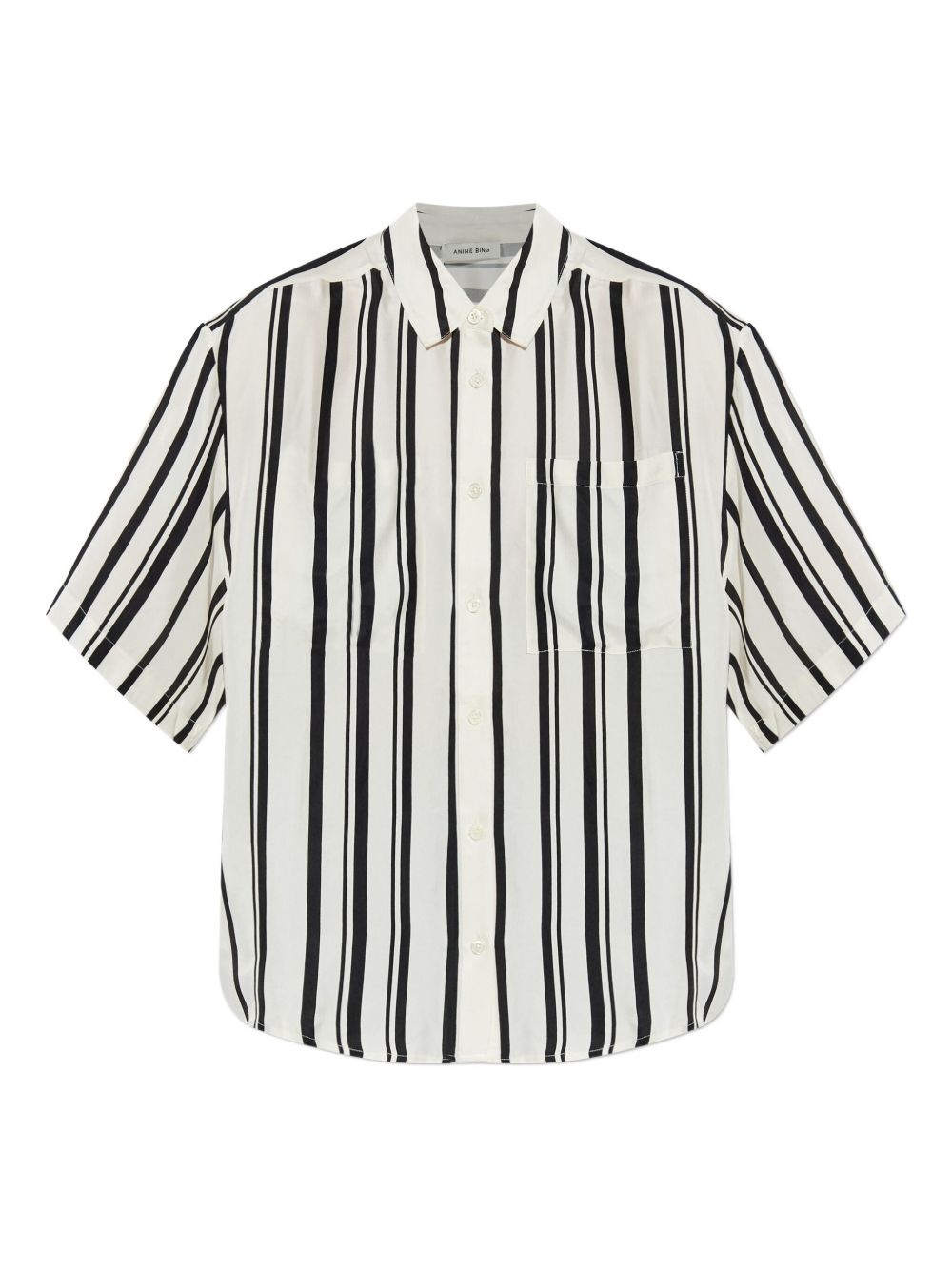 striped short-sleeve shirt Highlights - Black and white - Button-up front - Chest pocket - Classic collar - Short sleeves Imported Composition Cupro 60%, Viscose 40% Washing instructions Read Manufacturer Guidelines