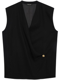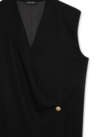 Venice wrap vest Highlights - Black - Stretch-design - Wrap design - Embossed gold-tone buttons - V-neck - Sleeveless - Off-centre front button fastening - Straight hem - Full lining Made in United States Composition Viscose 96%, Spandex/Elastane 4% SIZE & FIT Measurement BUST 42.51 in(108 cm) Shoulder Width 17.71 in(45 cm) Washing instructions Dry Clean Only