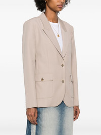 wool blazer Highlights - Taupe - Front button fastening - Chest welt pocket - Two side flap pockets - Central rear vent Imported Composition Lining: Polyester 55%, Viscose 45% Outer: Wool 100% SIZE & FIT Model measurements Height 5 ft 11 in(1.8 m) Bust/Chest 31.49 in(80 cm) Hips 35.82 in(91 cm) Waist 24.8 in(63 cm) FittingInformation Designed to be unstructured, offering a loose fit throughout The internal shoulder pads offer a structured shape Made from a midweight non-stretch fabric