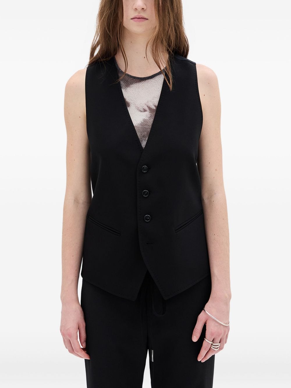 Charlotte button-fastening waistcoat Highlights - Black - V-neck - Button fastening - Sleeveless - Straight hem - Rear tie-fastening Made in Italy Composition Viscose 100% Washing instructions Read Manufacturer Guidelines