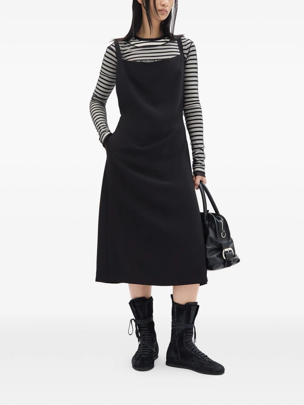 Desi square-neck midi dress Highlights - Black - Side tie fastening - Square neck - Sleeveless - Side seam pockets - Midi length Made in Italy Composition Viscose 100% Washing instructions Read Manufacturer Guidelines