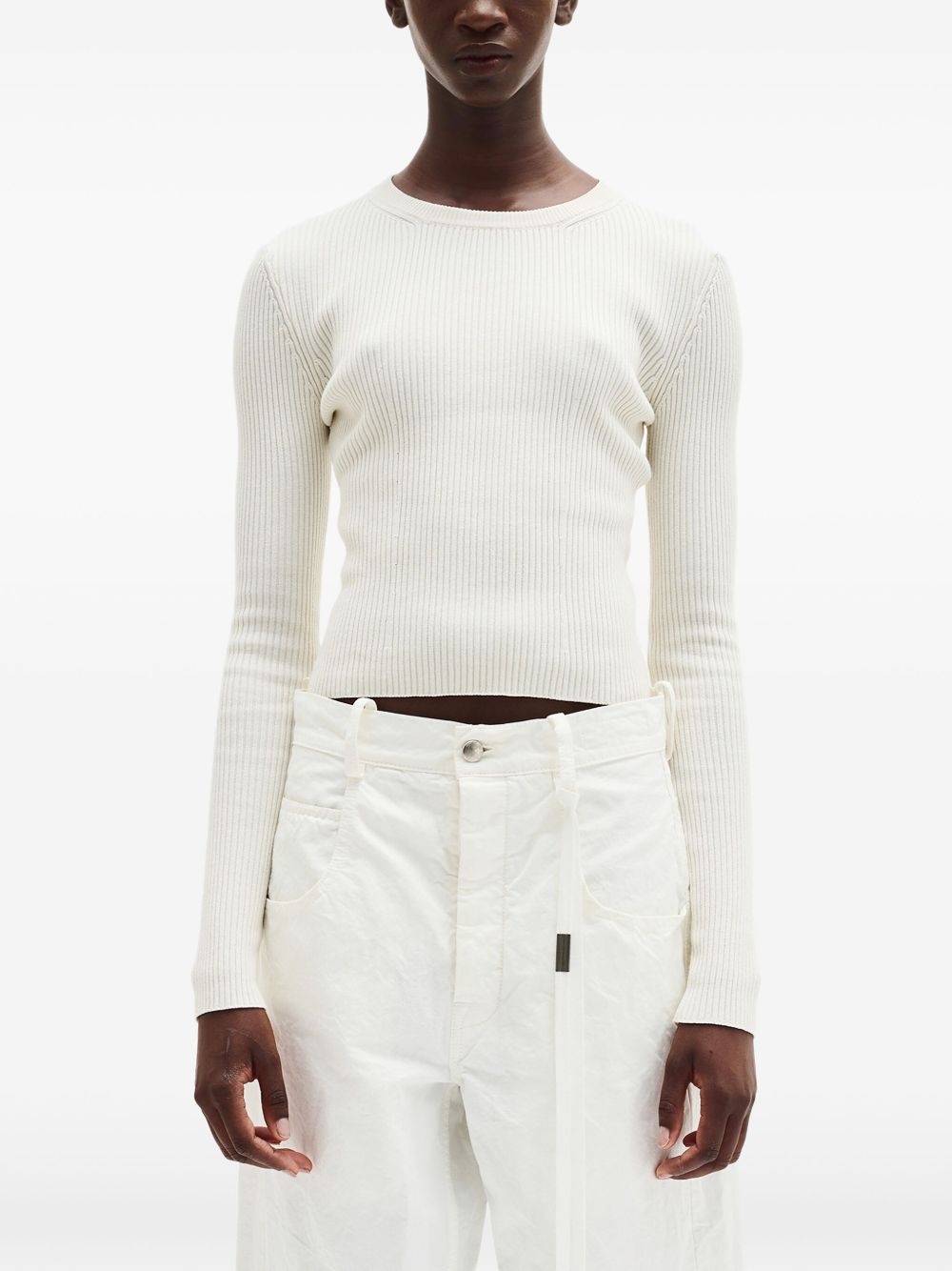 Kati cropped sweater Highlights - White - Crew neck - Ribbed knit - Long sleeves - Straight hem Made in Italy Composition Cotton 50%, Wool 30%, Silk 20% Washing instructions Read Manufacturer Guidelines