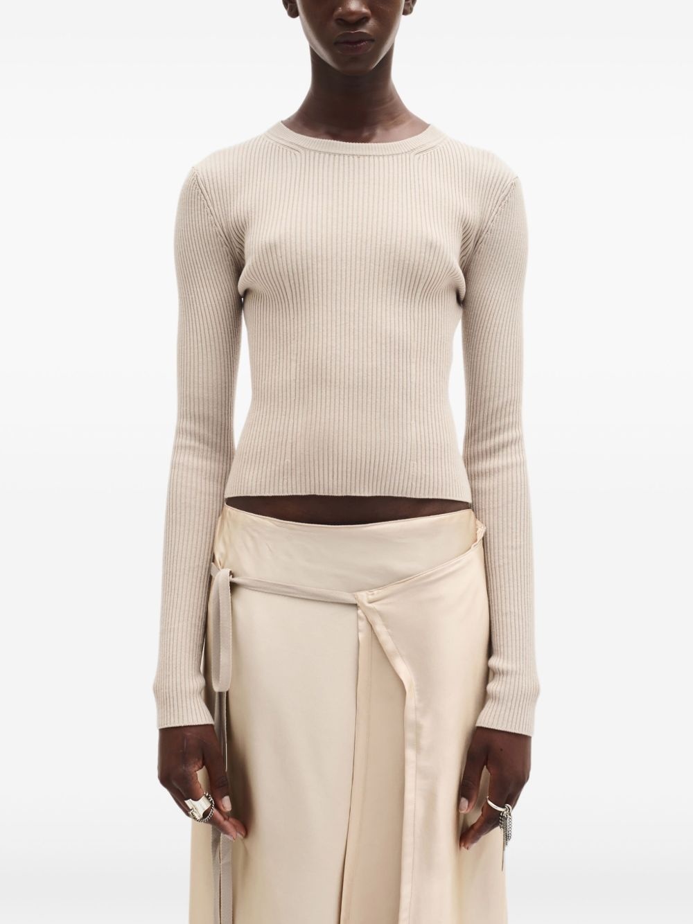 Kati cropped sweater Highlights - Beige - Crew neck - Long sleeves - Ribbed knit - Straight hem Made in Italy Composition Cotton 50%, Wool 30%, Silk 20%