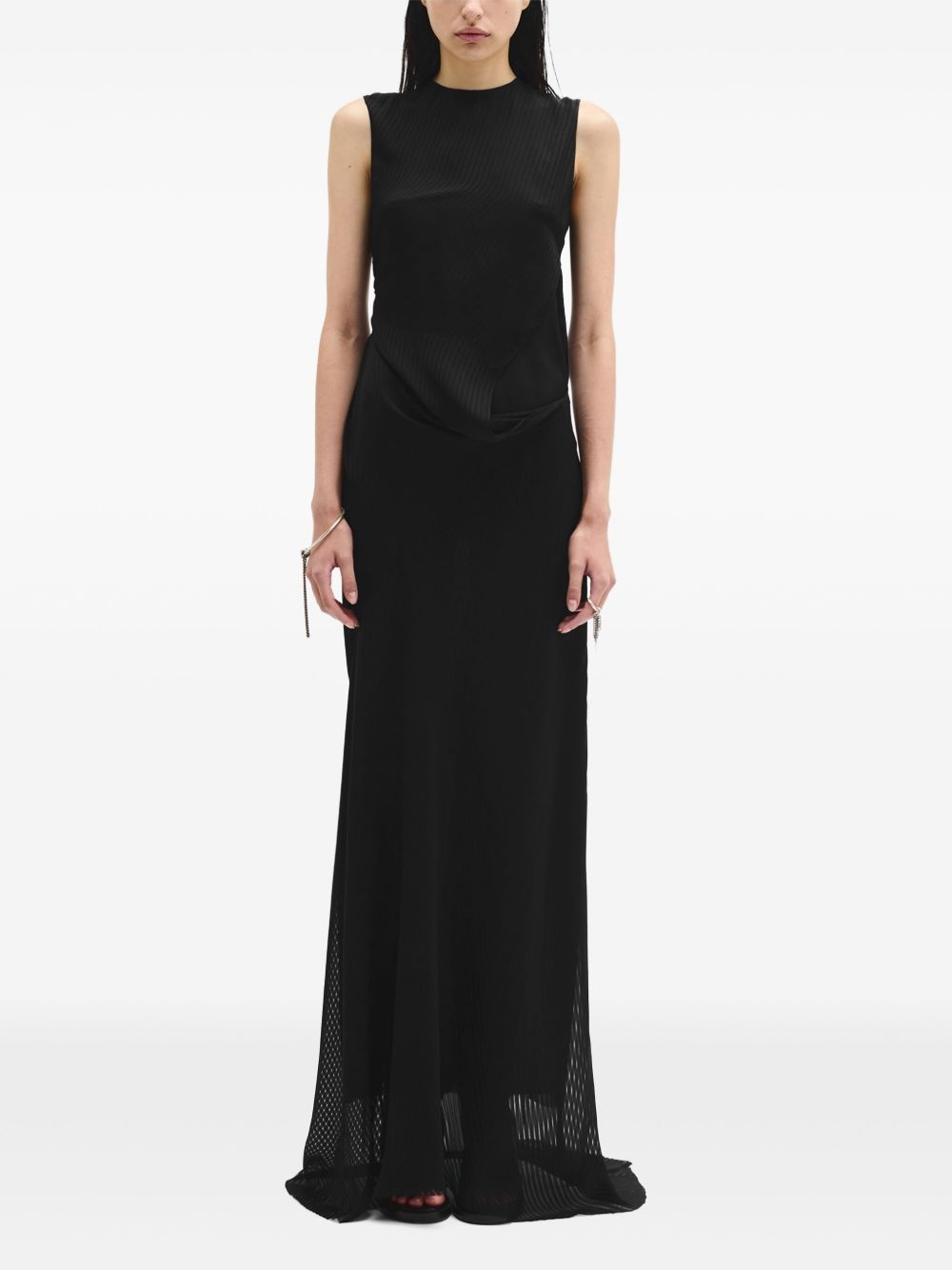 Leah asymmetric dress Highlights - Black - Sleeveless - Crew neck - Semi-sheer construction - Long length Made in Italy Composition Viscose 75%, Silk 25%
