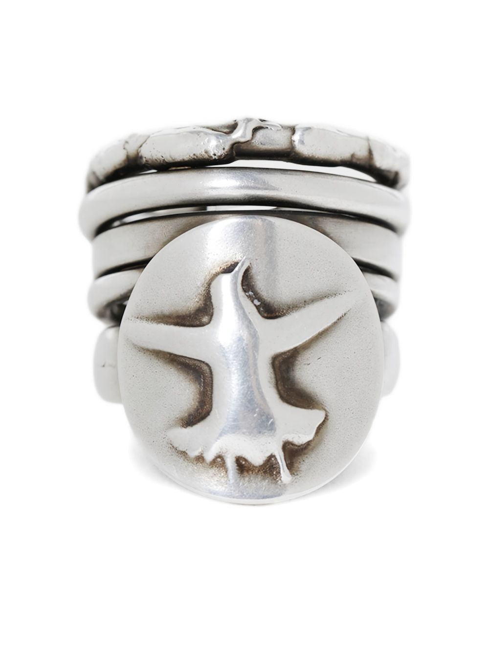 Mossa Flying Bird stacked ring Highlights - Silver - Bird detail - Stacked band - Polished finish - Normal everyday use and external agents may reduce the lustre of gemstones and gold surfaces. to maintain, use specific, non-abrasive products specially meant for cleaning jewellery. Made in Italy