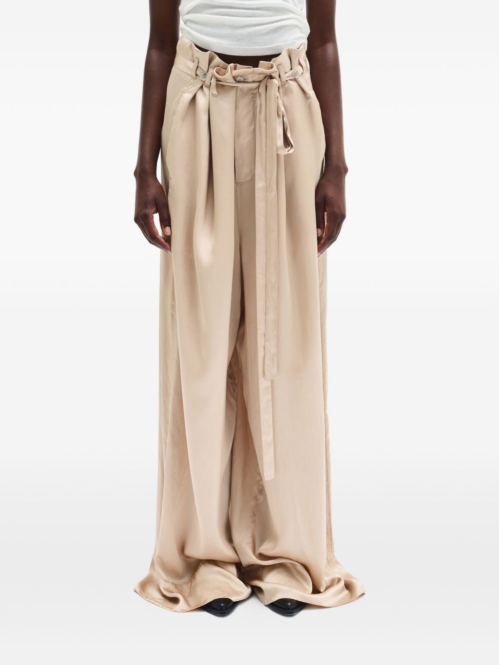 Odit wide-leg trousers Highlights - Beige - Front tie detail - Pleated design - High-waisted - Flowy silhouette Made in Italy Composition Silk 100% Washing instructions Read Manufacturer Guidelines