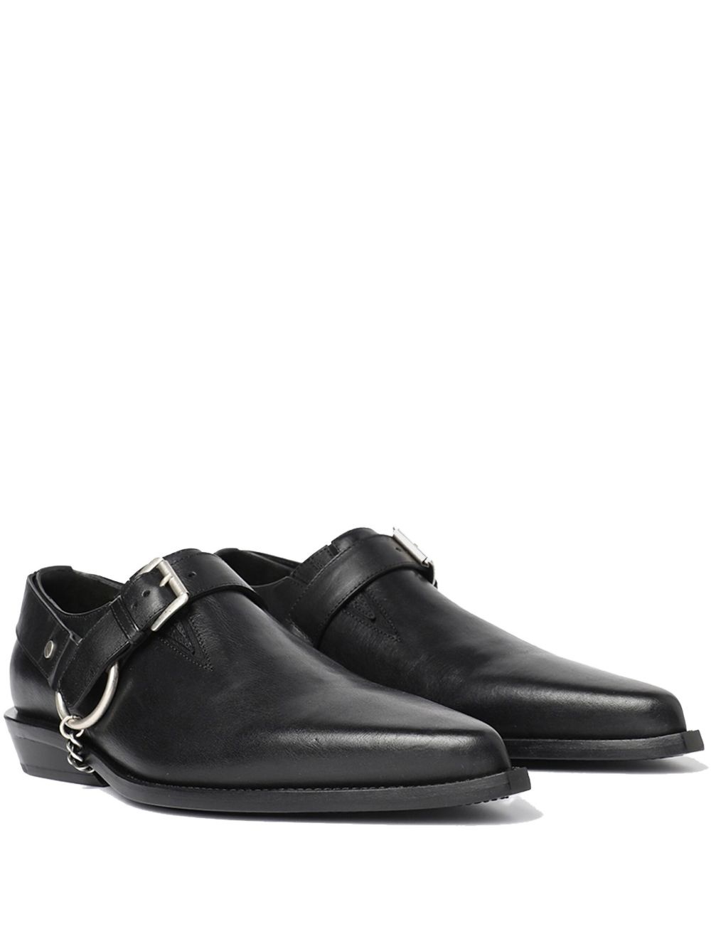 Pointy buckle-detail leather monk shoes