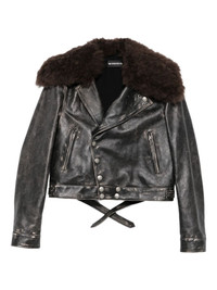 shearling-collar jacket Highlights - Black - Shearling collar - Zip pockets - Button fastening - Belt - Long sleeves Made in Italy Composition Sheep Skin/Shearling 100%, Wool 75%, Polyamide 23%, Other fibres 2% Washing instructions Read Manufacturer Guidelines
