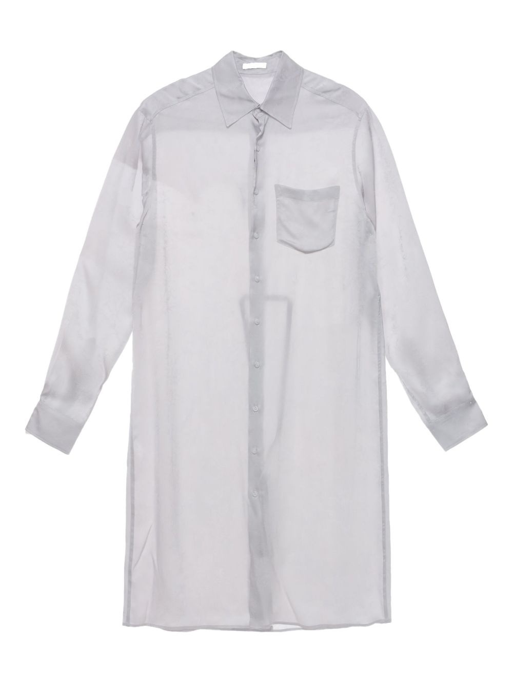 transparent-design shirt Highlights - Grey - Front button fastening - Chest patch pocket - Long sleeves - Buttoned cuffs Made in Italy Composition Viscose 79%, Silk 21% Washing instructions Read Manufacturer Guidelines