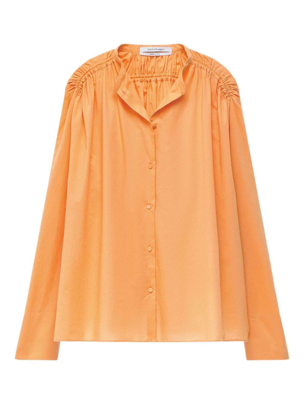 gathered-detail voile blouse Highlights - Light orange - Front button fastening - Round neck - Long sleeves - Straight hem Made in Italy Composition Organic Cotton 100%