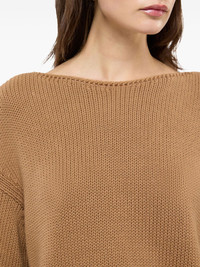 knitted jumper Highlights - Camel brown - Boat neck - Long sleeves Imported Composition Organic Cotton 100%